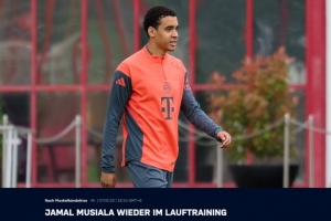 拜仁官方:穆西亚拉恢复跑步训练
